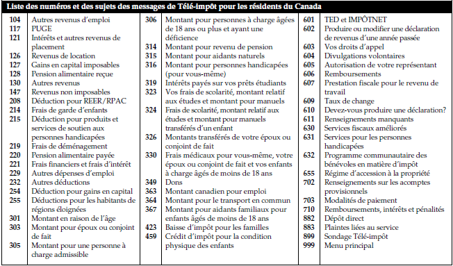 Pour obtenir des renseignements personnels et généraux en matière d'impôt par téléphone, utilisez notre service automatisé SERT en composant le 1-800-267-6999.
