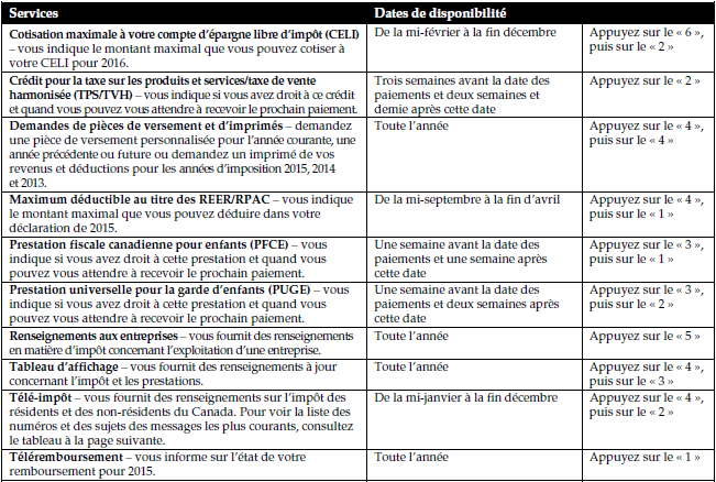Si vous appelez avant le 1er mai, vous aurez besoin du montant du revenu total que vous avez inscrit à la ligne 150 de votre déclaration de 2014. Si vous appelez le 1er mai ou après, vous aurez besoin du montant du revenu total que vous avez inscrit à la ligne 150 de votre déclaration de 2015.