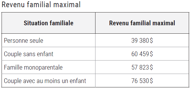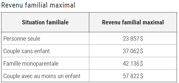 Si votre revenu de travail dépasse 1 200 $, cherchez dans le tableau ci-après le revenu familial maximal qui s'applique à vous en fonction de votre situation familiale. Si votre revenu familial égale ou dépasse le revenu familial maximal, vous n'avez pas droit à la prime au travail adaptée. S'il est inférieur, remplissez la colonne 2 de la partie E de l'annexe P.