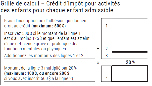 25 Crédit d'impôt pour activités des enfants