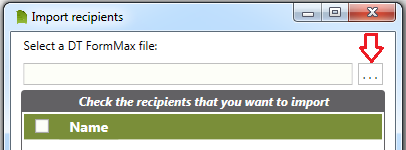 To import one or more recipients from another DT FormMax file, first select the file by clicking on the browse button.