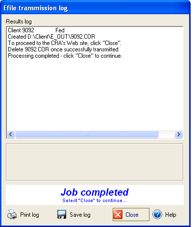 If you are already registered to efile personal tax returns, then the same EFILE Online number and password can be used to transmit corporate returns. Please note that when accessing the CRA's Web page and attaching the file, you will be required to input its location and name. This information can be obtained from the efile transmission log. Alternatively, you may copy the location from the T2 Internet filing menu (seen above) and paste it onto the CRA's Web page. Once completed, you will then only have to manually enter the name of the ".COR" file. In the example above, the location and file name would be specified as follows: Any file submitted under the manual method will be processed in real time, meaning that the acknowledgement will be generated almost instantly. Once a corporate return has been successfully transmitted, you should delete the .COR file from your E_Out folder. This can be accomplished through Windows Explorer. You should also note that the processing statuses of transmitted returns will not be automatically updated by DT Max. They can be updated manually through the DT Max option Move statuses forward found in the Management menu by selecting Change statuses and selecting Efile acknowledgement, or using the Progress keyword. It is highly recommended, for your own records, that you print and retain any acknowledgment. The automatic method, upon clicking Continue from the Transmit and receive menu, will complete all of the steps above. The program will populate the required fields, transmit the file in question, and update the status of your client to efile acknowledged. An EFILE report may be viewed and printed by clicking on View and print EFILE reports from the Efile menu. An EFILE report will be available for viewing only if the client has a 2012 taxation year end or later. If the client's taxation year end is prior to 2012, then the client's EFILE transmission log can be used to keep track of the client's progress. October 20, 2015 |