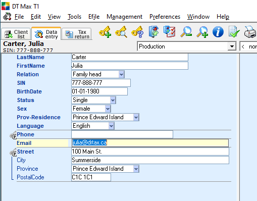 Note: Documents generated using Forms Printing will be in the same language as DT Max. Make sure that DT Max is set to the correct language for your client.
