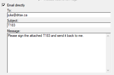 Check the Email directly box. Enter a Subject and a Message for the email.