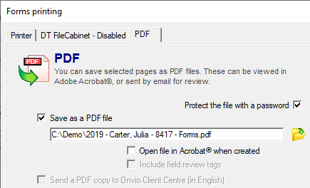 icon. This will open the Forms printing window with the PDF tab selected.