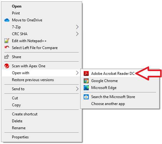 Acrobat Reader DC. If not, right click the file and select Open with Adobe Acrobat Reader DC.