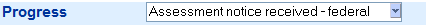 The keyword group Progress "Assessment notice received – federal" in the Data Entry screen will also contain the following keywords: