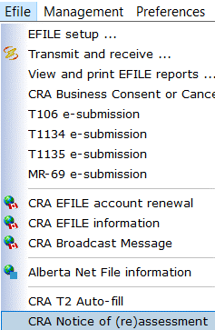 Select CRA Notice of (re)assessment from the Efile menu...