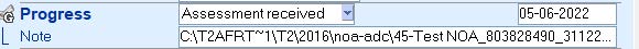 The keyword group Progress "Assessment received" in the Data Entry screen, contains the path of the archived file of the Notice of (re)assessment.