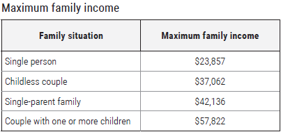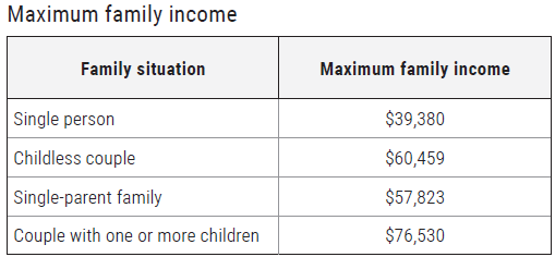 If your work income is greater than the applicable amount above, use the table below to determine the maximum family income for your family situation. If your family income is equal to or greater than the maximum family income, you are not entitled to the work premium. If it is less than the maximum, complete column 1 in Part E of Schedule P.