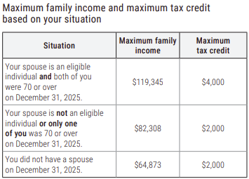 If your spouse on December 31, 2025, is also an eligible individual, you can split the credit with them by completing form TP-1029.SA-V. Only one of you has to enclose it with your return, but you both have to sign it.