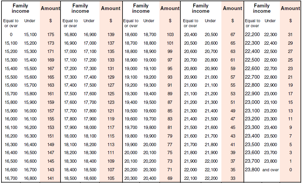 Find your family income below. Enter, on line 43 of Form MB479, the amount shown beside your family income.