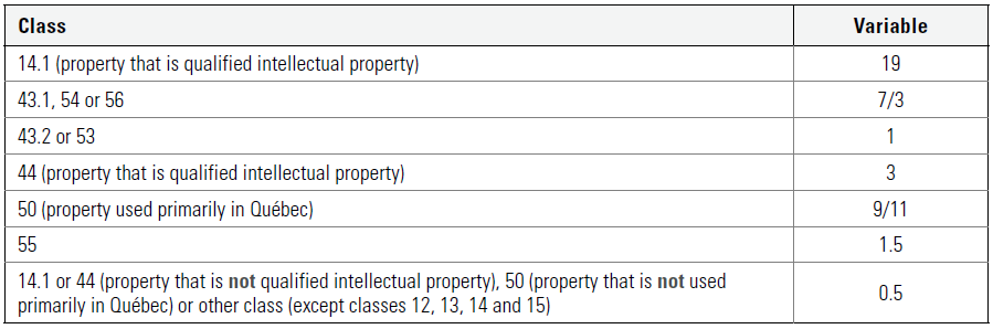 Use column 5.2 only for AIIP acquired after November 20, 2018, that became available for use during the taxation year. Refer to the table below for the variable to be used to calculate the amount in column 5.2 for AIIP available for use before 2024.