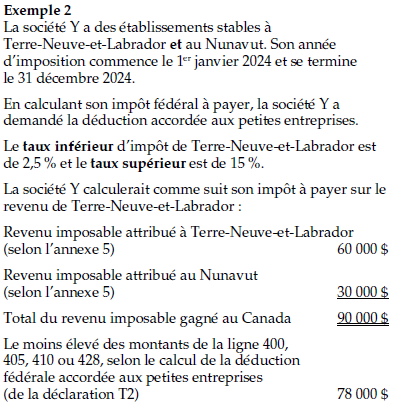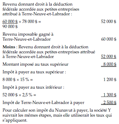 Si le revenu imposable d'une société est gagné dans plus d'une province ou d'un territoire, le revenu donnant droit à la déduction fédérale accordée aux petites entreprises doit également être réparti proportionnellement.