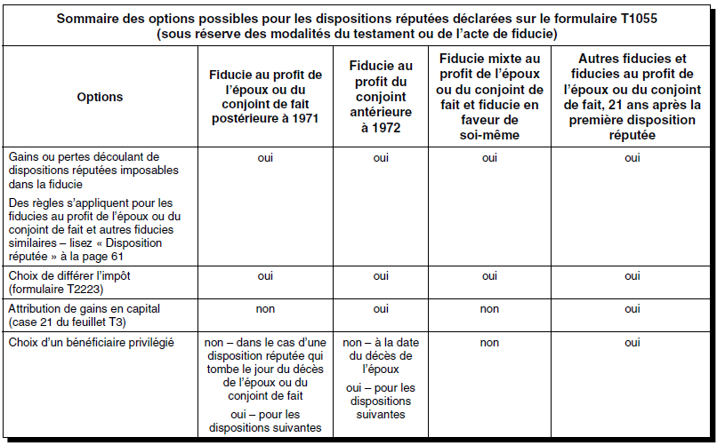Formulaire T1055, Sommaire des dispositions réputées