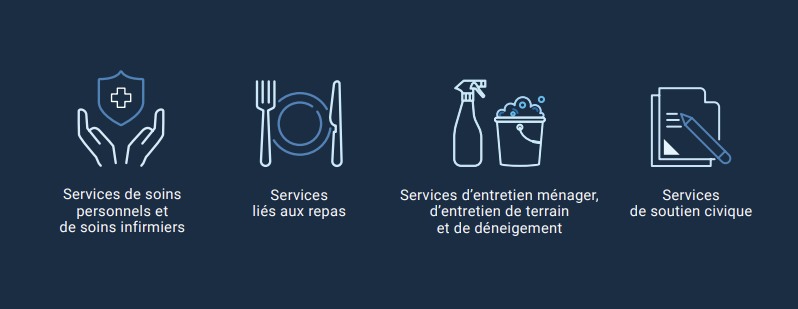 Les services de soins personnels sont des services liés aux activités quotidiennes d'une personne dont le niveau d'autonomie n'est pas suffisant pour qu'elle puisse prendre soin d'elle-même. Ces services se rapportent uniquement