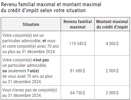 Si votre revenu familial égale ou dépasse le revenu familial maximal qui correspond à votre situation, vous n'avez pas droit au crédit d'impôt. Voyez le tableau ci-dessous.