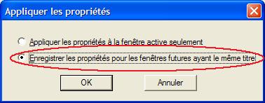 Lorsque vous obtenez la fenêtre noire, appuyez sur ALT + TAB pour basculer vers une autre application. Puis dans la barre des tâches, faites un clic droit sur le bouton « C:\WINDOWS... » et choisissez « Propriétés ». Changez l'option d'affichage à « Fenêtre » et cliquez sur « OK ». Dans la nouvelle fenêtre « Appliquer les propriétés », choisissez « Enregistrer les propriétés pour les fenêtres futures ayant le même titre ». Cliquez sur « OK ».